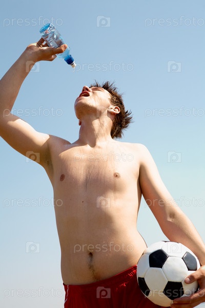 Парень обливается водой из бутылки