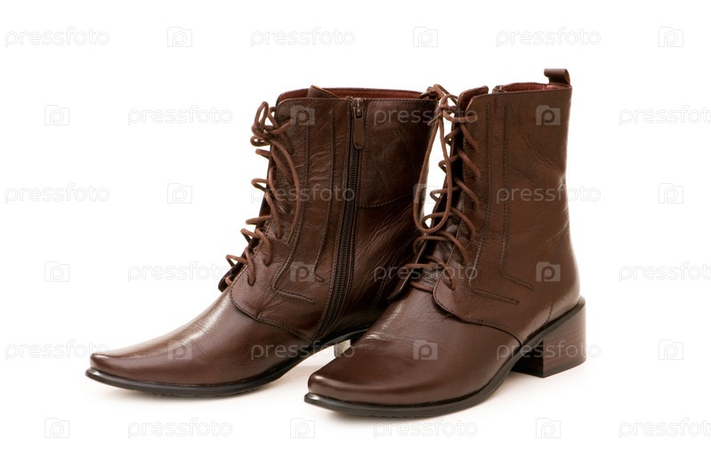 Коричневые женские сапоги на белом фоне