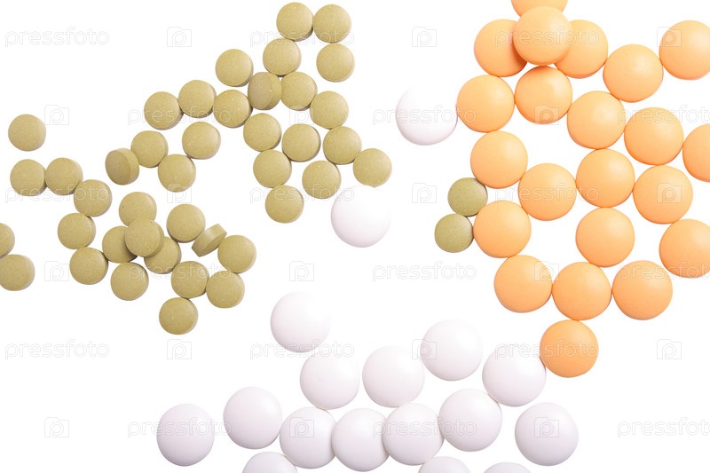 Различные таблетки на белом фоне