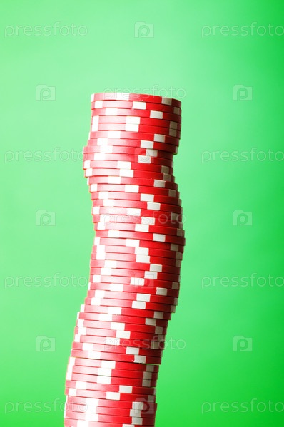 Стопка игральных фишек на зеленом фоне