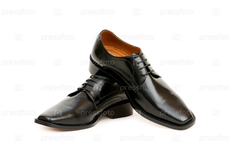 На белом фоне черные мужские туфли