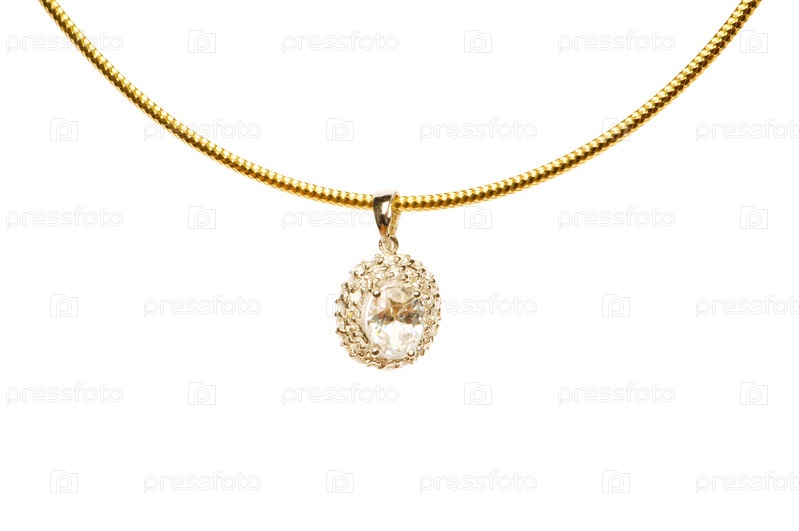 Кулон на золотой цепочке на белом