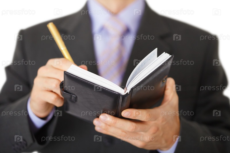 Бизнесмен, делающий записи в органайзер