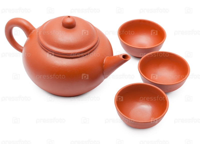 Керамический чайник и чашки