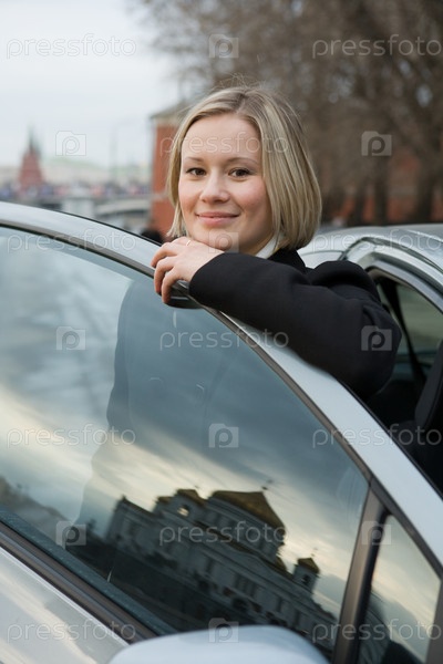 Красивая улыбающаяся девушка у автомобиля