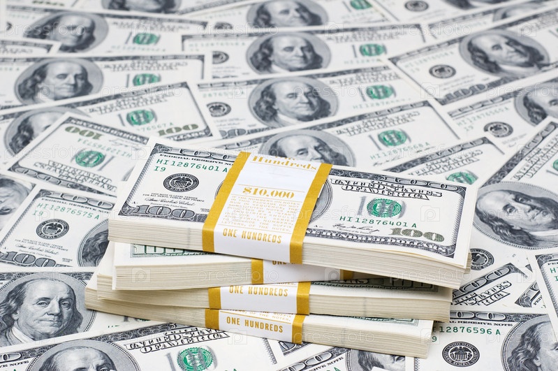 Куча долларов на денежном фоне