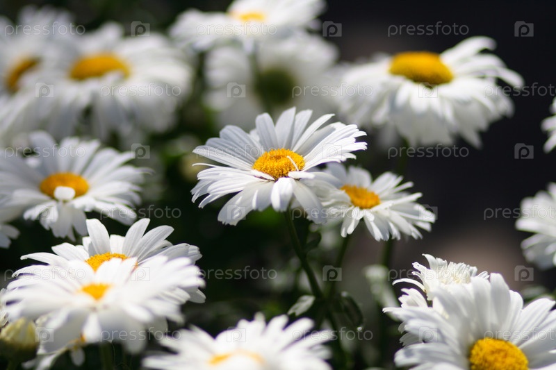 Несколько красивых цветущих ромашек под летним солнцем