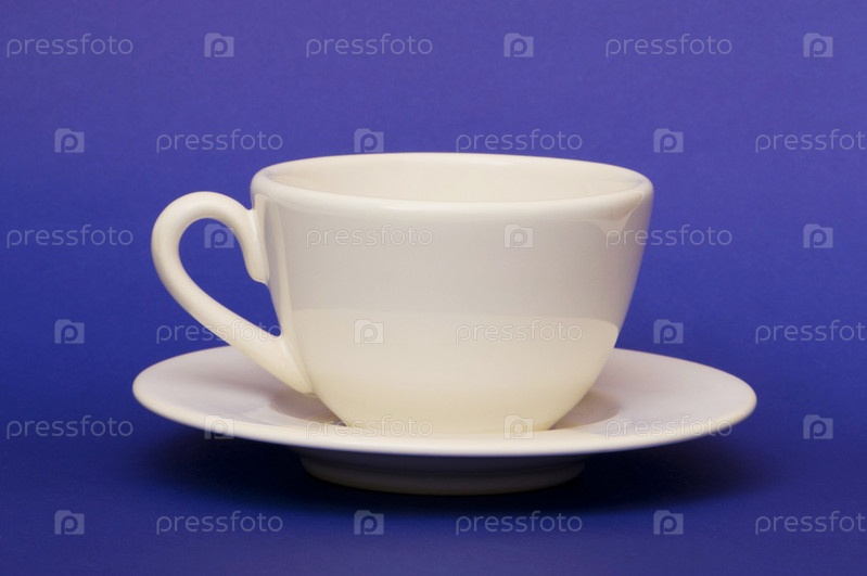 Белая чашка, изолированная на синем фоне