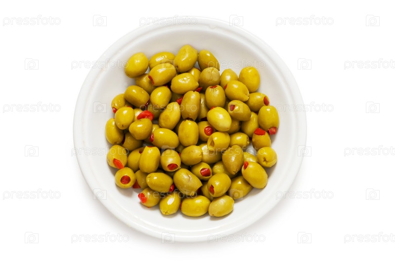Тарелка с оливками на белом фоне