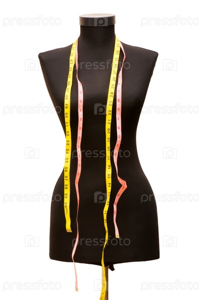 Сантиметровые ленты и манекен на белом фоне