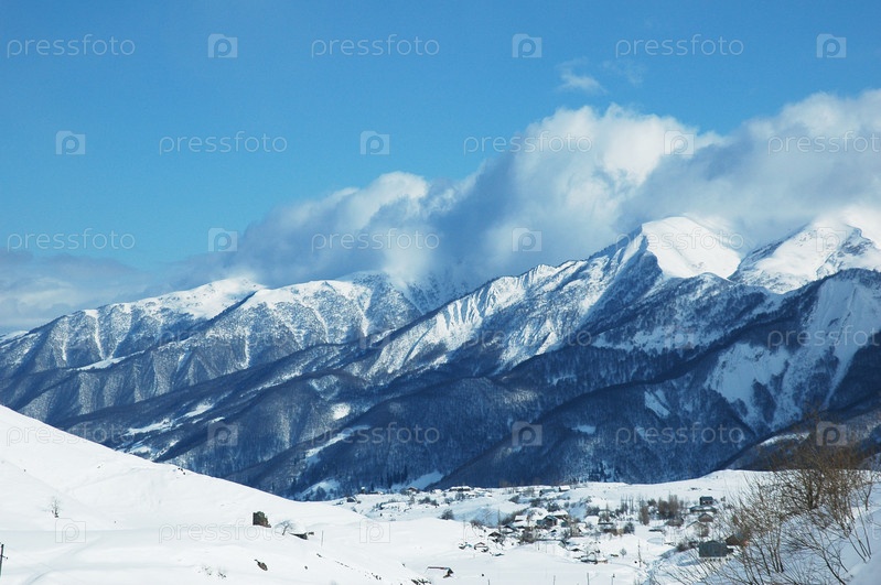 Высокие горы под снегом зимой