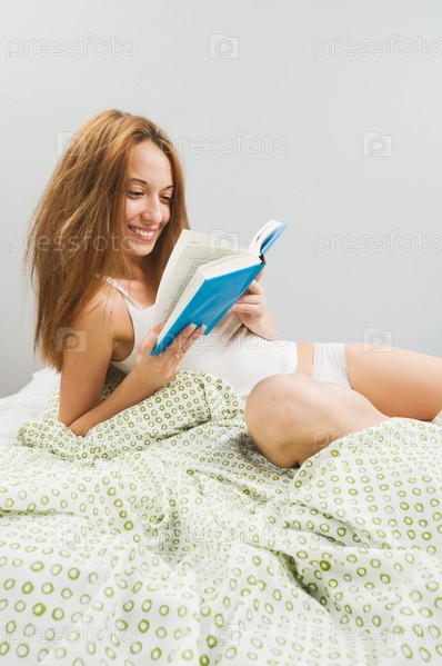 Девушка читает книгу в кровати
