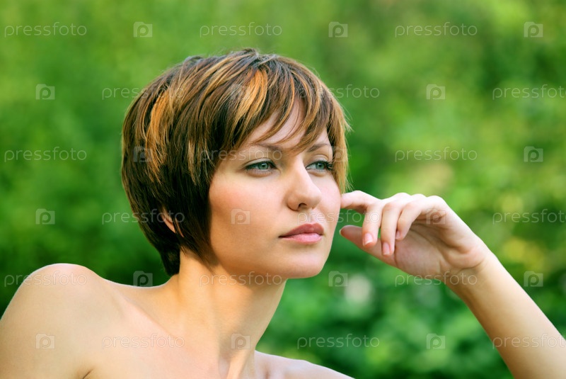 Портрет молодой девушки на зеленом фоне