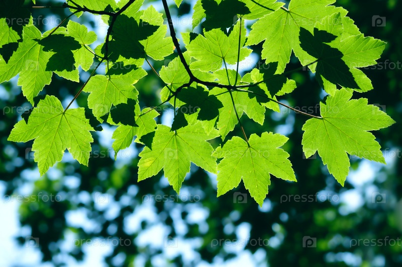 Зеленые кленовые листья крупным планом