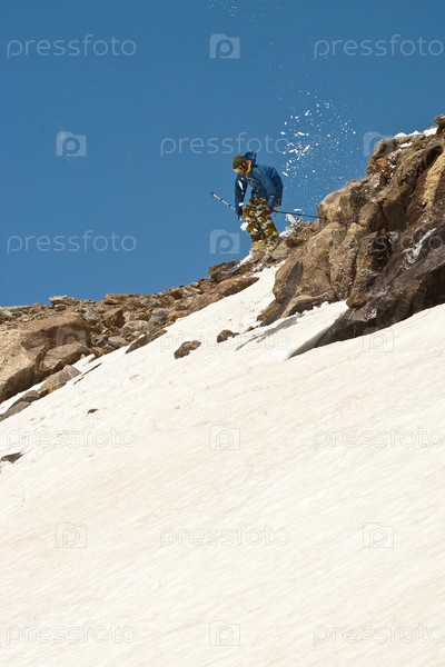 Кавказ, Приэльбрусье. Горнолыжник в прыжке
