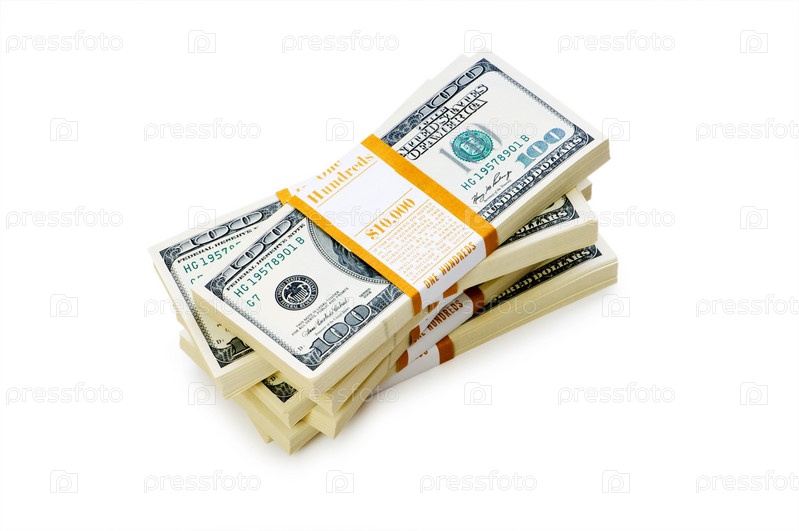 Куча долларов изолирована на белом