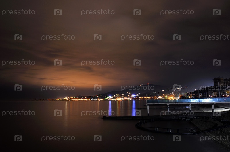 Ночная панорама побережья Черного моря в Адлере, Россия