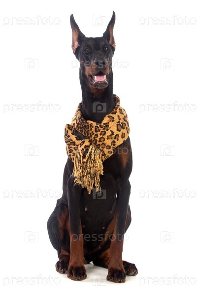 Собака доберман с шарфиком