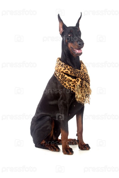 Собака доберман с шарфиком