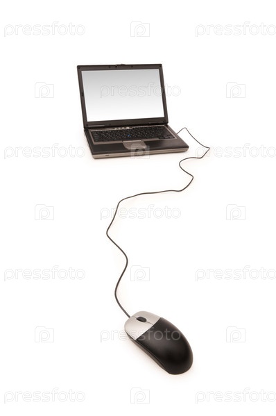 Ноутбук с мышкой на белом фоне