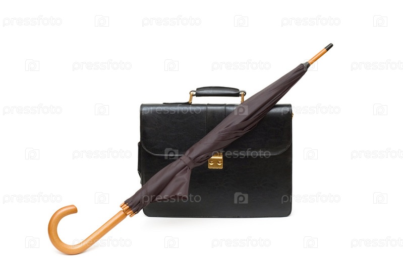Черные портфель и зонтик на белом фоне