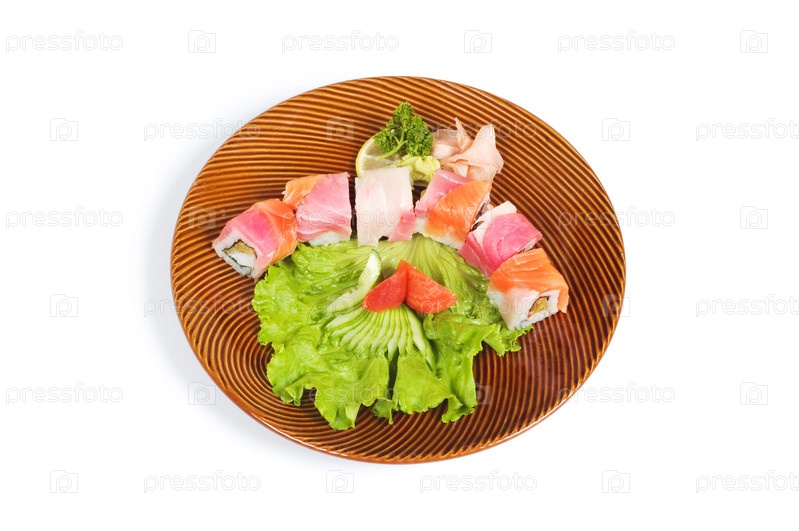 Тарелка с суши крупным планом