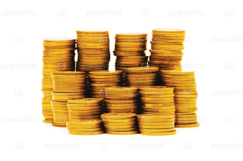 Стопки монет на белом фоне