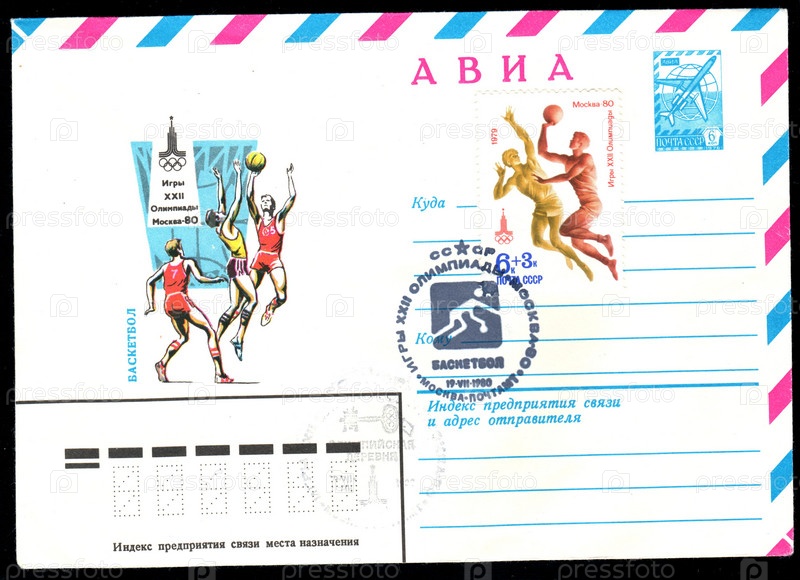 Конверт и марка, посвященные Олимпийским играм в Москве, 1980 год