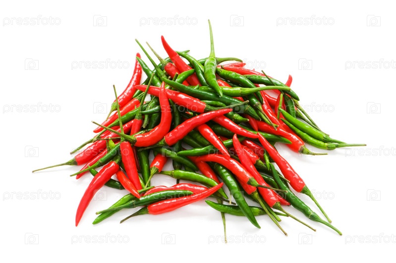 Красный и зеленый перец чили на белом фоне
