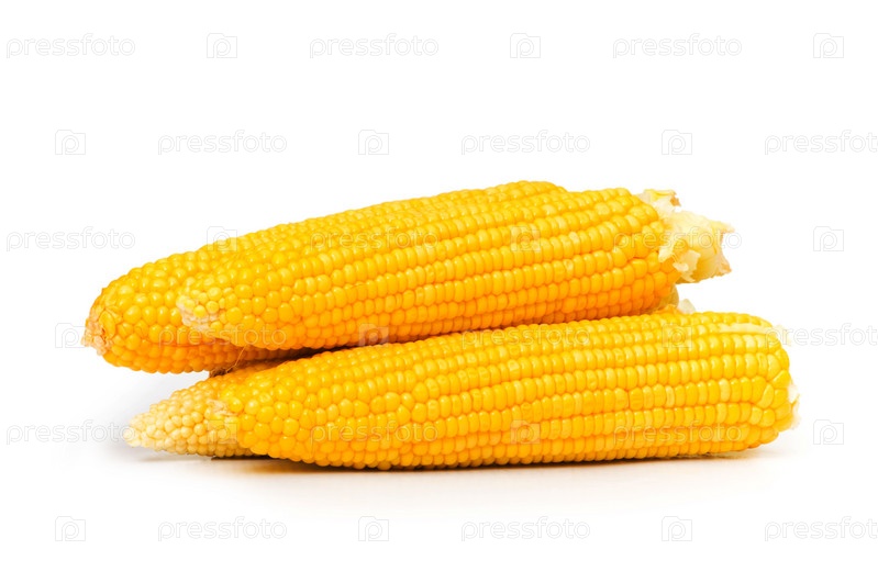 Кукурузные початки на белом фоне