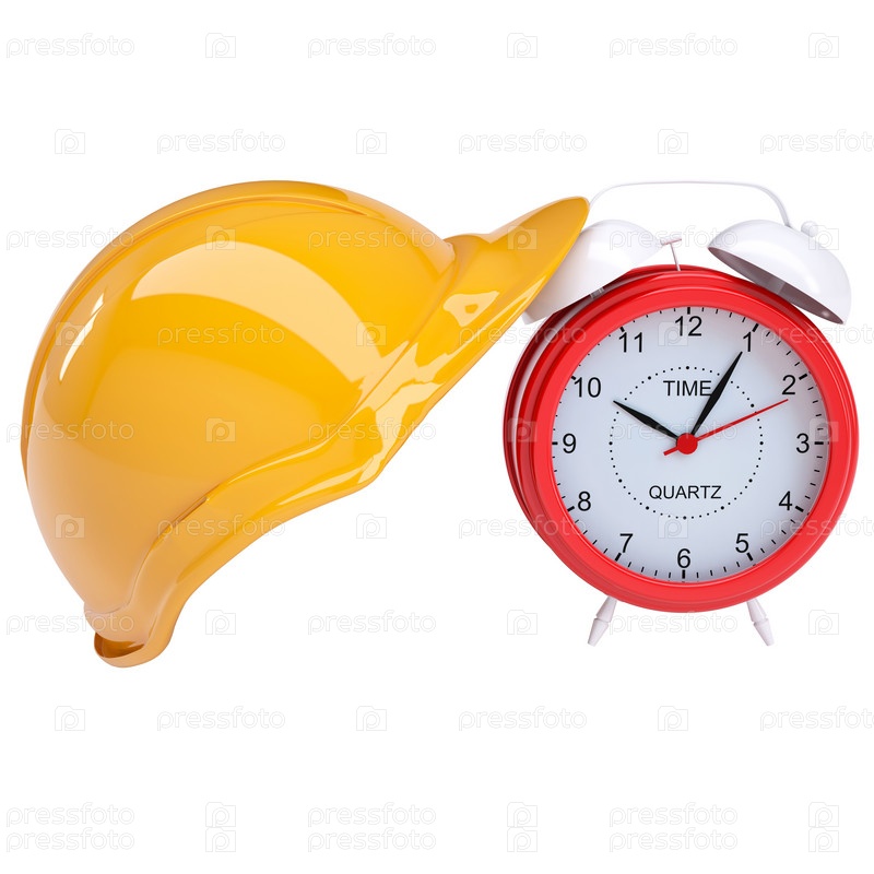 Красный будильник и желтый шлем