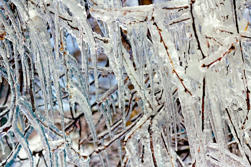 Обледенвшие ветви дерева крупным планом