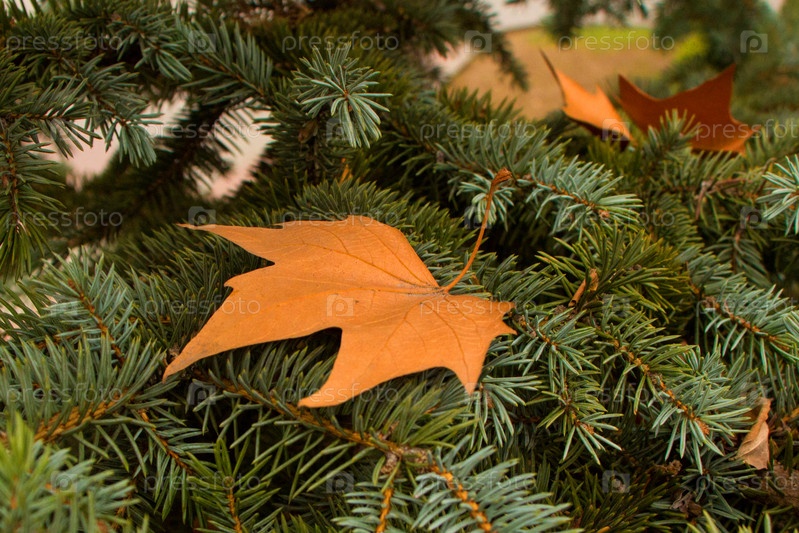 Желтый лист на елке