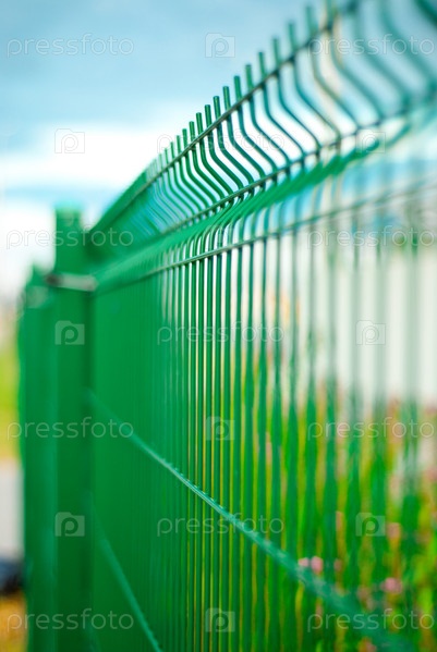 Зеленый забор из металлических прутьев