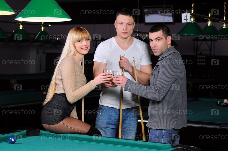 Молодые привлекательные люди играют в бильярд
