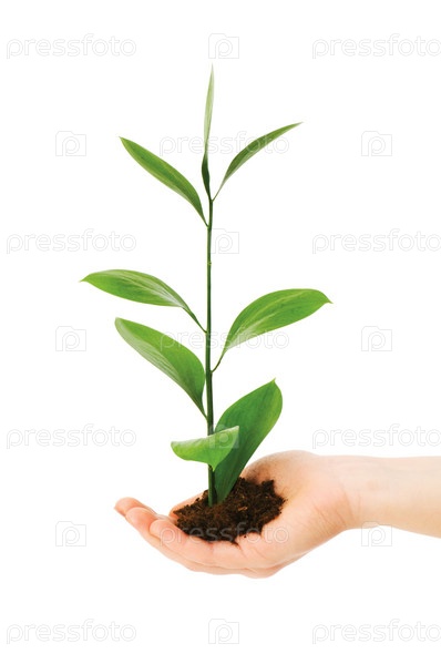 Зеленый саженец в руке изолированный на белом