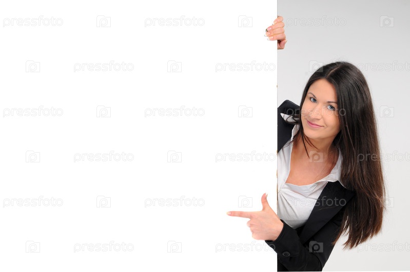 Деловая женщина с пустой доской на белом фоне