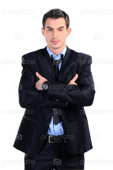 Портрет счастливого молодого бизнесмена, изолированного на белом фоне