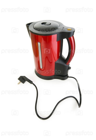 Красный электрический чайник на белом фоне