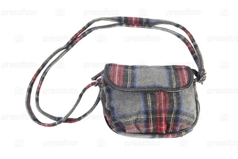 Клетчатая текстильная сумка на белом фоне
