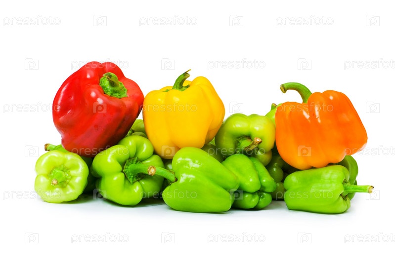 Разноцветные болгарские перцы, изолированные на белом фоне