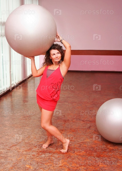 Молодая красивая девушка с фитнес шарами