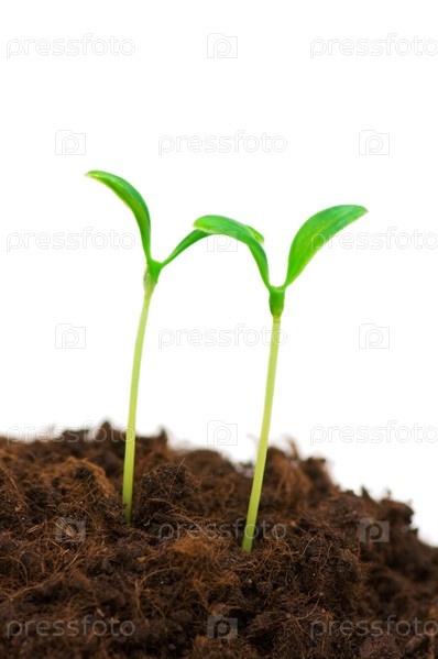 Саженцы в земле на белом фоне