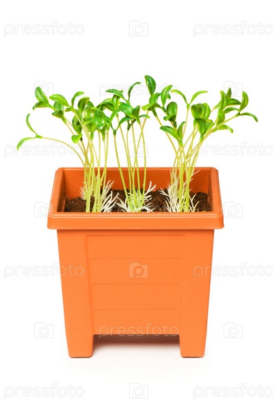 Зеленая рассада в горшке
