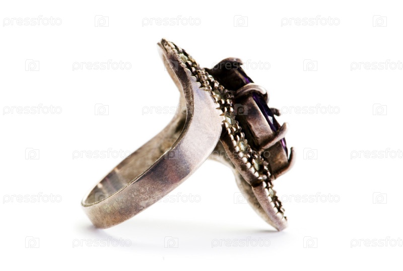 Серебряное кольцо на белом фоне