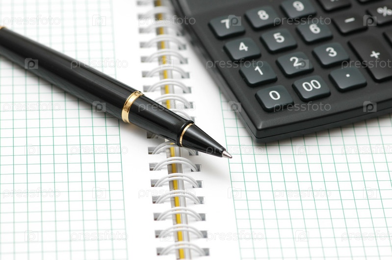 Ручка и калькулятор на фоне блокнота