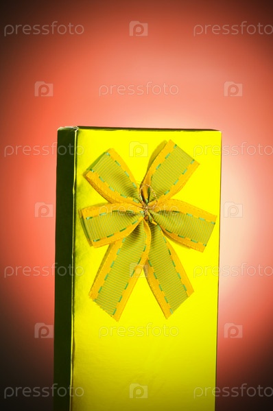 Желтая коробка с подарком на красном фоне
