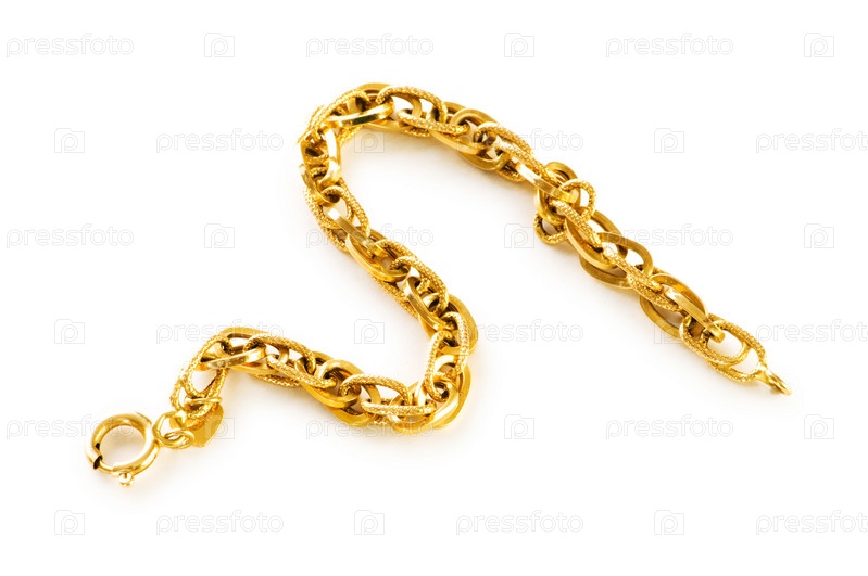 Золотая цепочка-браслет, изолированная на белом фоне