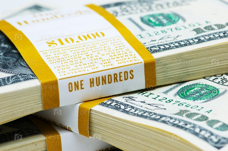Пачки по 10.000 долларов крупным планом
