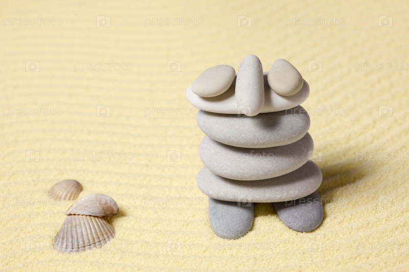 Забавная фигурка из гальки на песчаном пляже